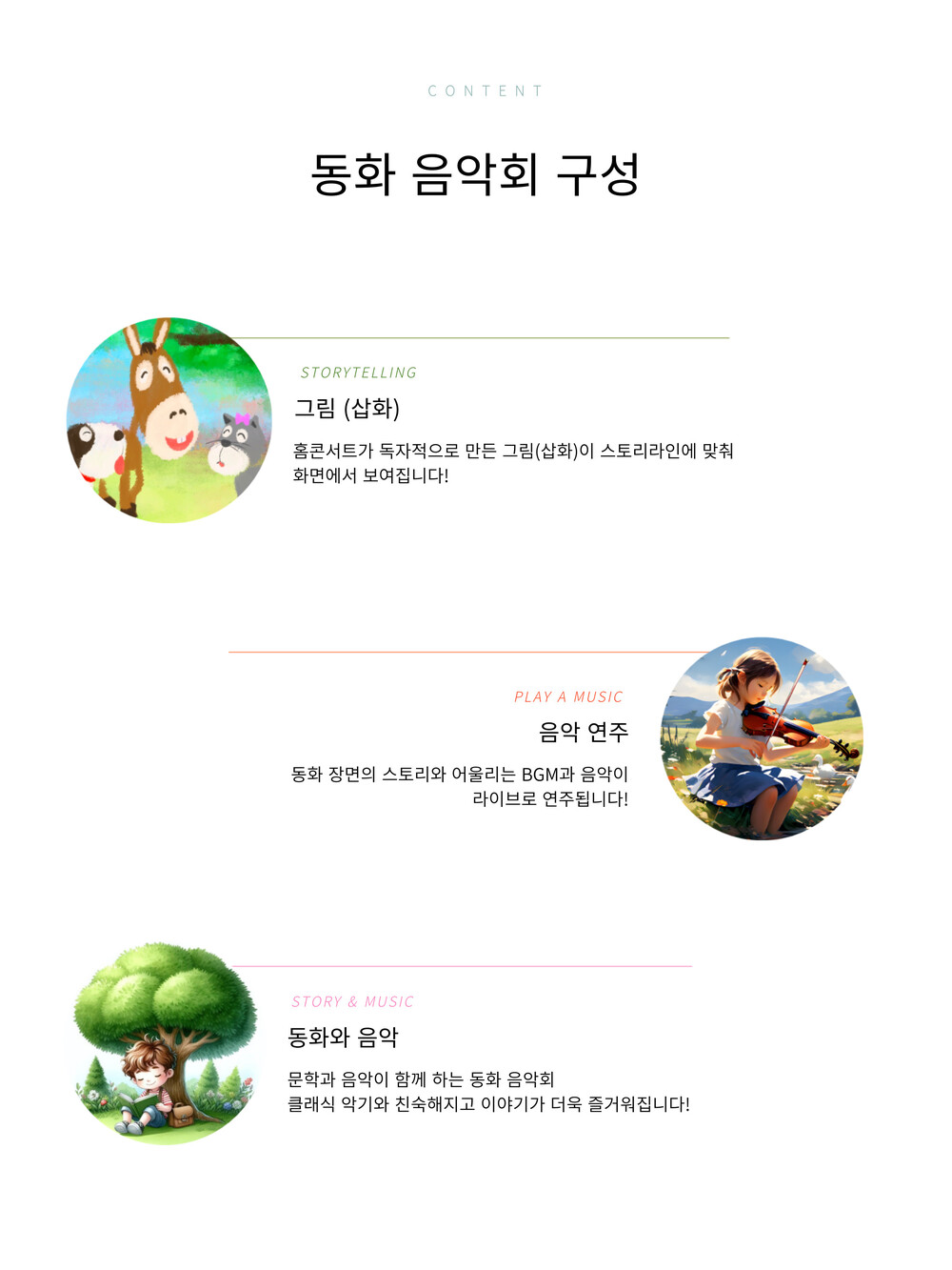 콘텐츠 기획 ㅣ 별도의 음악회 상품을 원하시는 경우 요청하신 구성으로 기획/ 제공하여 드립니다.