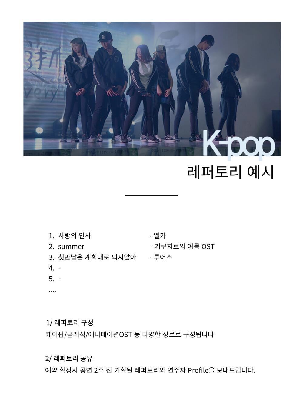 콘텐츠 기획 ㅣ 별도의 음악회 상품을 원하시는 경우 요청하신 구성으로 기획/ 제공하여 드립니다.