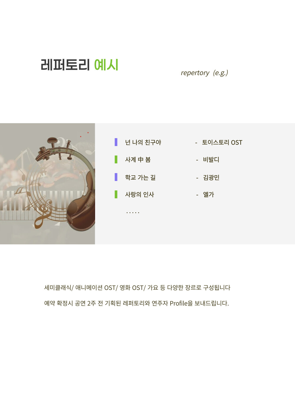 콘텐츠 기획 ㅣ 별도의 음악회 상품을 원하시는 경우 요청하신 구성으로 기획/ 제공하여 드립니다.