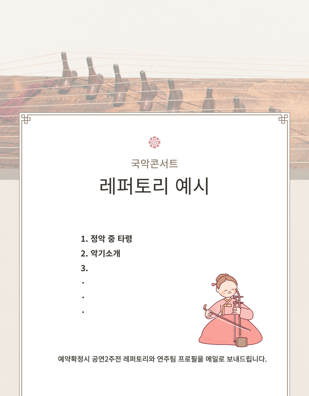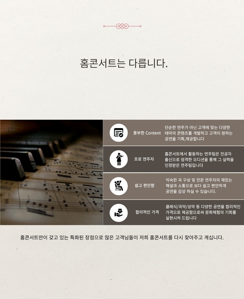 콘텐츠 기획 ㅣ 별도의 음악회 상품을 원하시는 경우 요청하신 구성으로 기획/ 제공하여 드립니다.