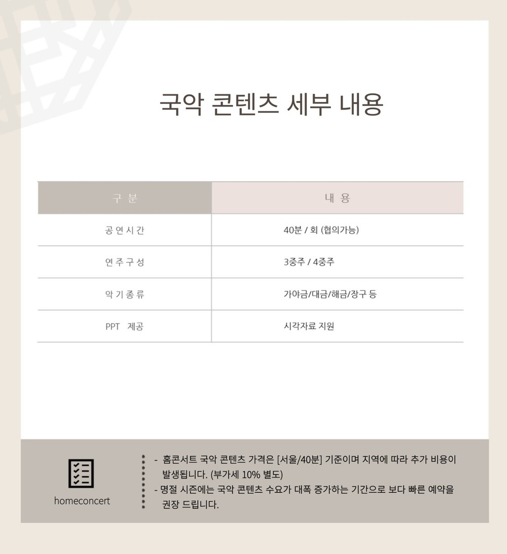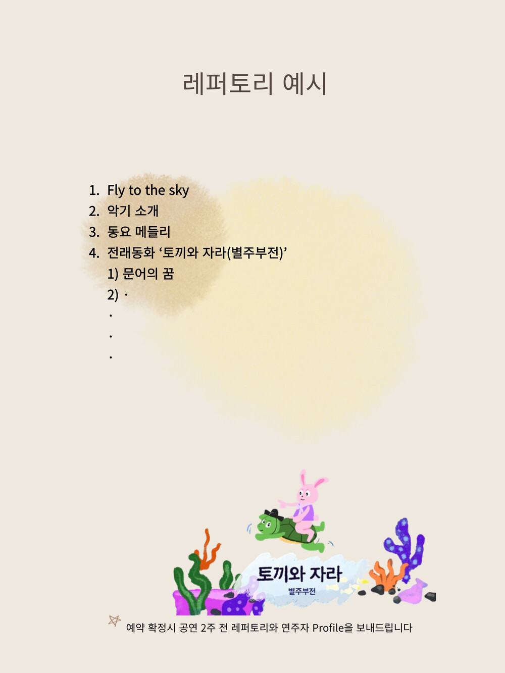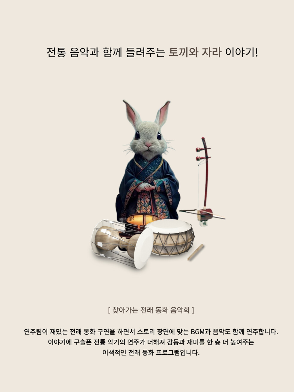 콘텐츠 가격 ㅣ서울/ 3중주/ 40분(전래동화) 기준이며 지역에 따라 추가 비용이 발생됩니다.(부가세 10% 별도)