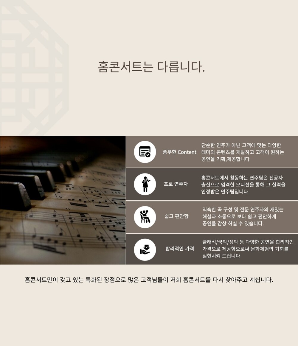수도권 이외 ㅣ 홈콘서트는 전국으로 여러분을 찾아갑니다. 수도권 이외의 지역은 고객센터(1522-2787)로 전화 주세요.