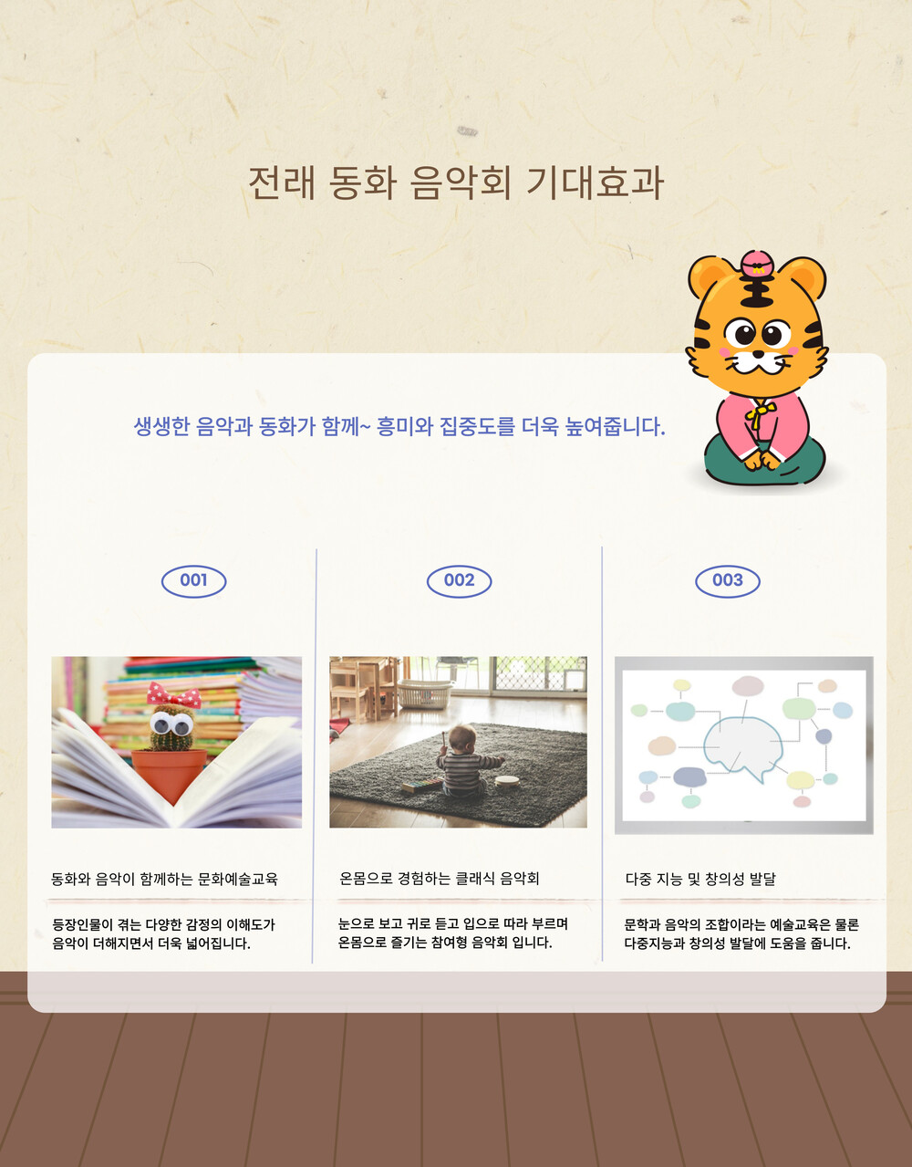 콘텐츠 가격 ㅣ서울/3중주/40분(전래동화) 기준이며 지역에 따라 추가 비용이 발생됩니다.(부가세 10% 별도)
