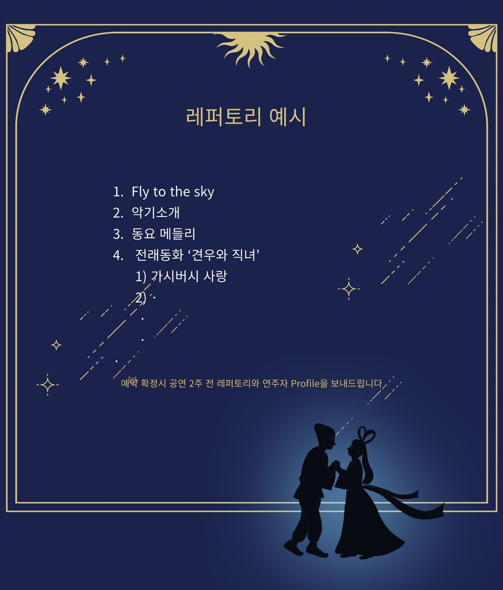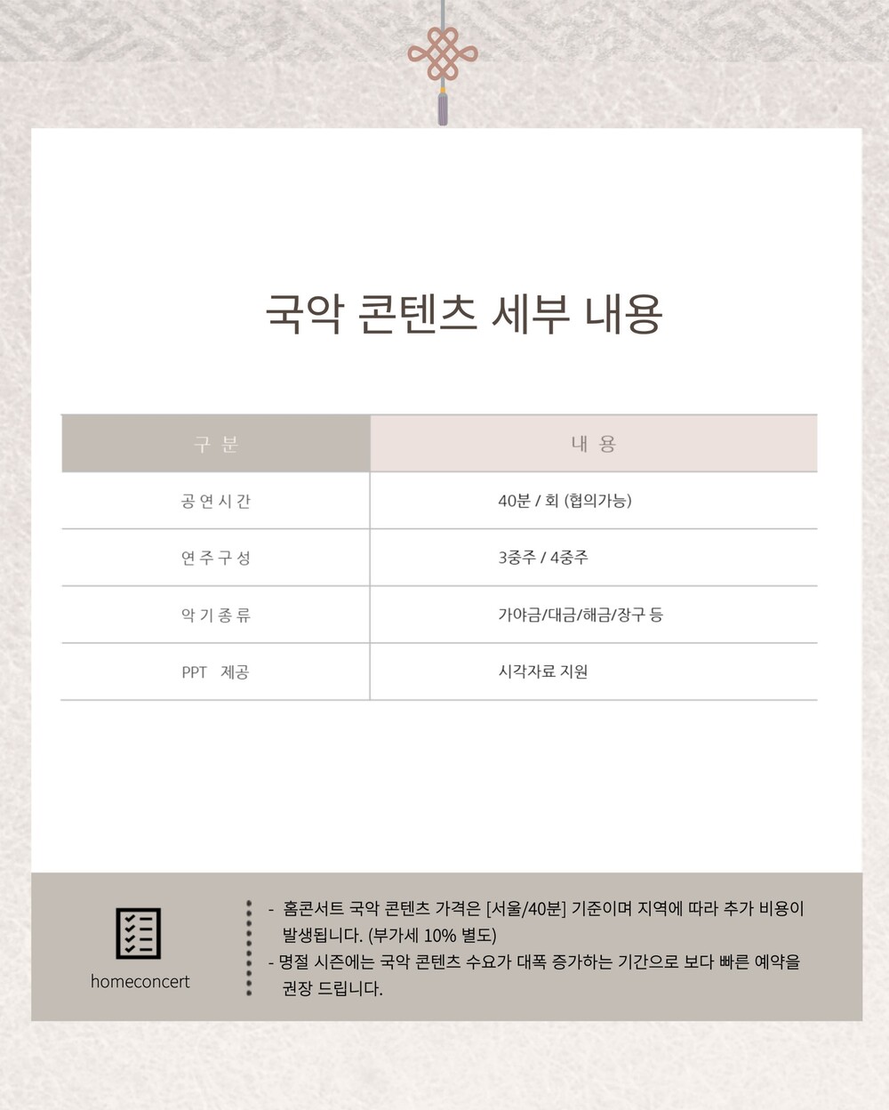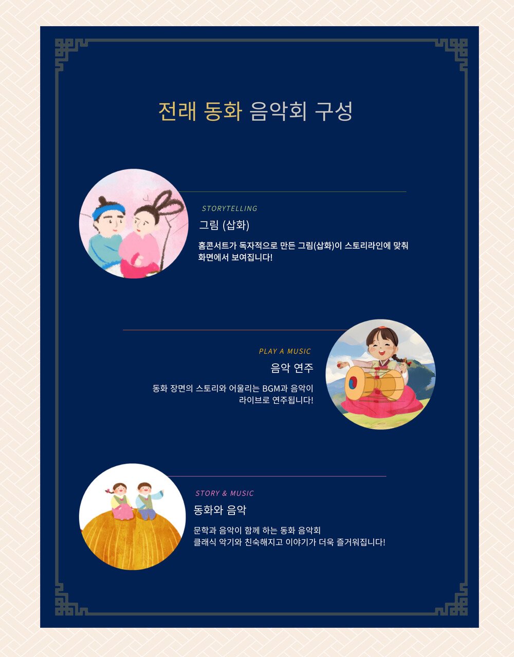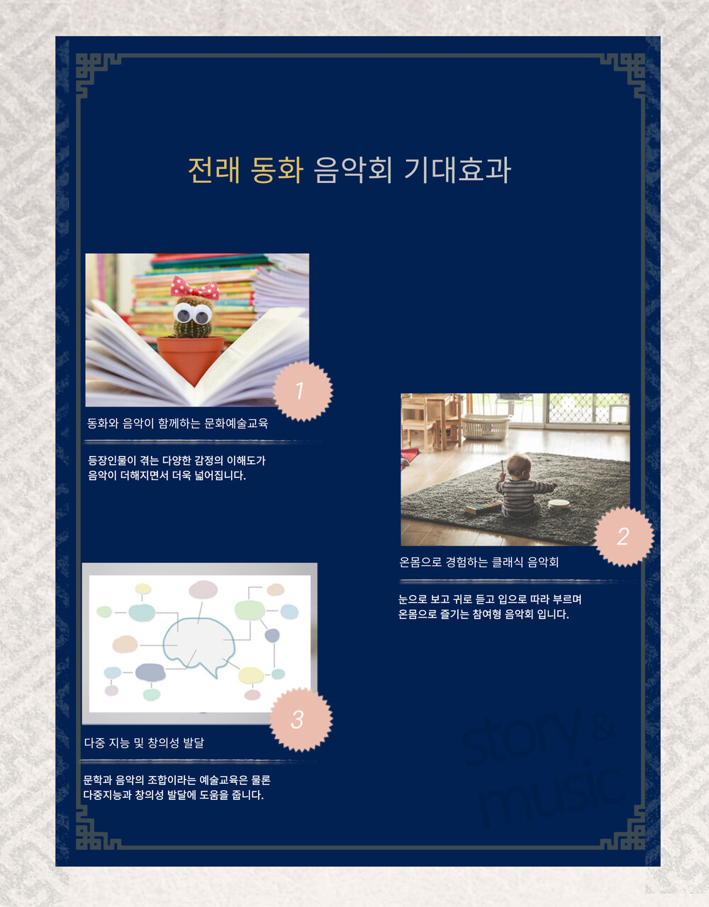 콘텐츠 가격 ㅣ서울/ 3중주/ 40분(전래동화) 기준이며 지역과 선택사항에 따라 추가 비용이 발생됩니다.(부가세 10% 별도)