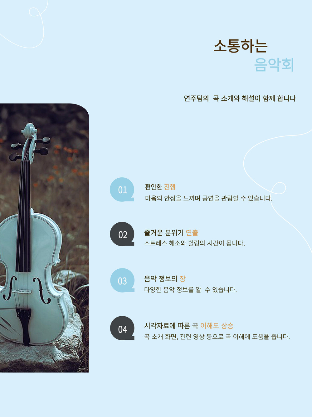 콘텐츠 기획 ㅣ 별도의 음악회 상품을 원하시는 경우 요청하신 구성으로 기획/ 제공하여 드립니다.