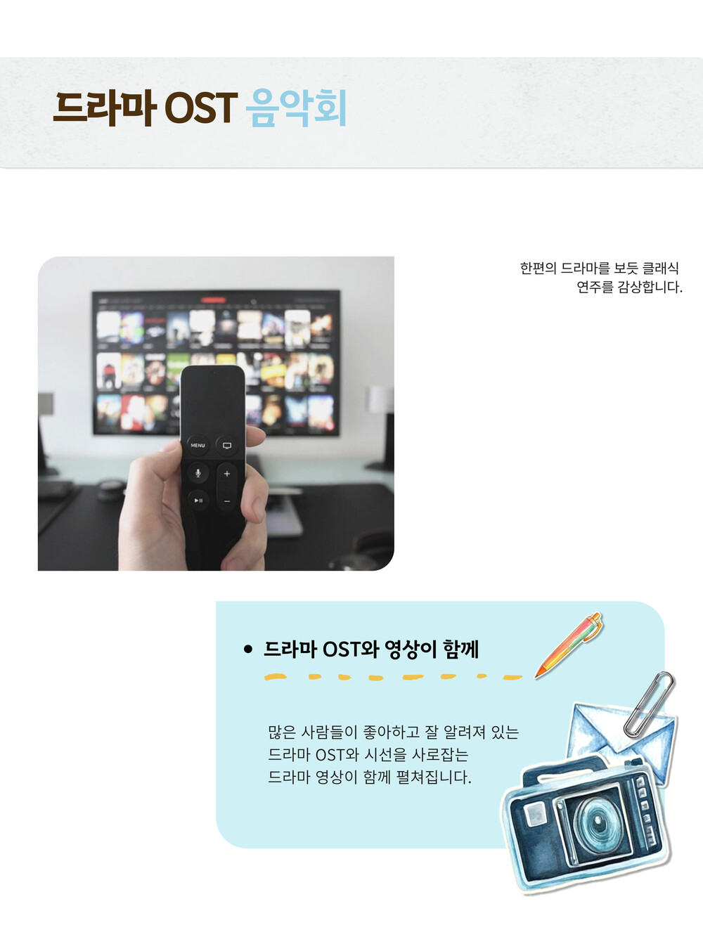 콘텐츠 기획 ㅣ 별도의 음악회 상품을 원하시는 경우 요청하신 구성으로 기획/ 제공하여 드립니다.