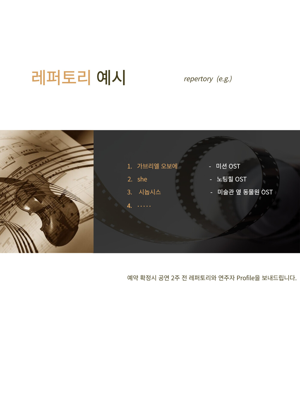 콘텐츠 기획 ㅣ 별도의 음악회 상품을 원하시는 경우 요청하신 구성으로 기획/ 제공하여 드립니다.